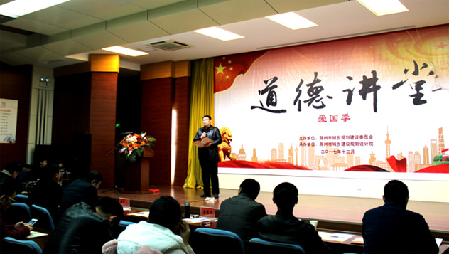 為了進(jìn)一步培育和踐行社會(huì)主義核心價(jià)值觀,夯實(shí)公民思想道德教育活動(dòng)平臺(tái),大力宣傳學(xué)習(xí)道德模范和身邊好人的感人事跡,不斷提高文明單位創(chuàng)建水平, 2017年12月8日下午在市規(guī)劃建設(shè)委附屬二樓會(huì)議中心,由市城鄉(xiāng)規(guī)劃建設(shè)委員會(huì)主辦、市城鄉(xiāng)規(guī)劃設(shè)計(jì)院承辦的市規(guī)建系統(tǒng)2017年度“道德講堂——愛(ài)國(guó)季”活動(dòng)。市規(guī)建委機(jī)關(guān)、在建設(shè)大廈委屬二級(jí)機(jī)構(gòu)在崗?fù)尽⑵渌瘜賳挝淮砉?20多人參加,市規(guī)建委主任、委黨組書記朱林及部分在崗委領(lǐng)導(dǎo)共同參加本次講堂活動(dòng)。
